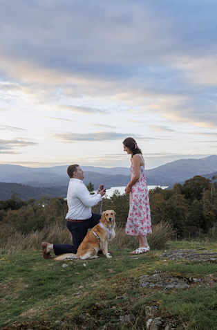 No crowds, no distractions, just the two of them, their loyal dog Nellie and the mountains quietly holding the moment.